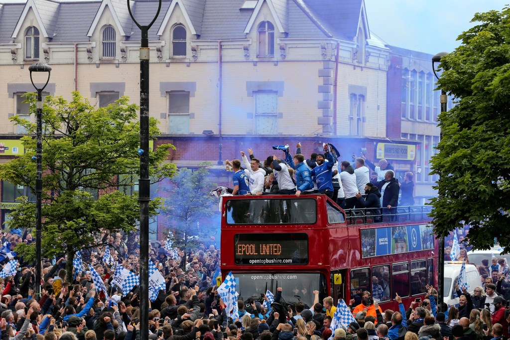 Hartlepool United’s fans celebrated their return to the EFL with the players who paraded the Bob Lord Trophy around the town on an open top bus.